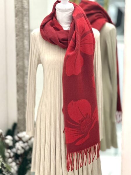 Izvirna cena je bila: 18,90 €.14,90 €Trenutna cena je: 14,90 €.Rdeč šal z rožami