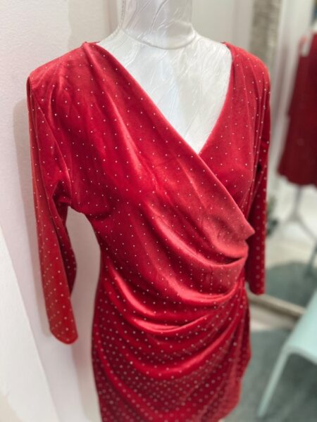 Izvirna cena je bila: 35,90 €.29,99 €Trenutna cena je: 29,99 €.Rdeča žametna obleka z kristalčki