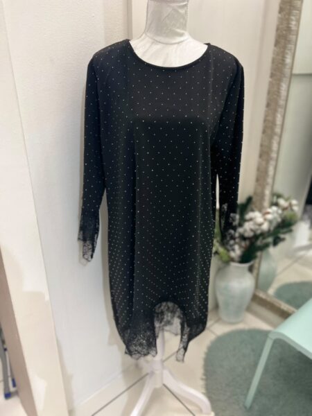Izvirna cena je bila: 53,90 €.35,99 €Trenutna cena je: 35,99 €.Črna obleka z čipko in kristali