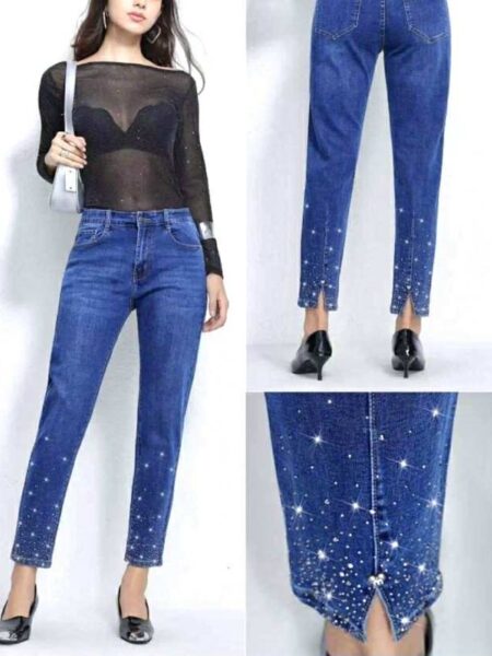 Izvirna cena je bila: 69,90 €.55,99 €Trenutna cena je: 55,99 €.Temna jeans jakna s kristalčki